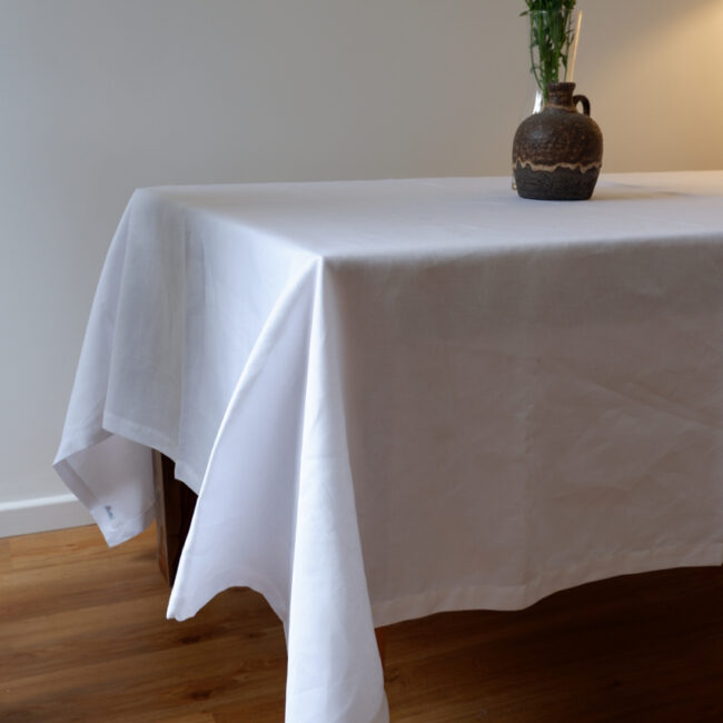 Per le occasioni più formali come matrimoni e serate di gala è usuale abbinare ad una bella tovaglia un sotto-tovaglia in tessuto coordinato che prevede la copertura dei piedi del tavolo.
