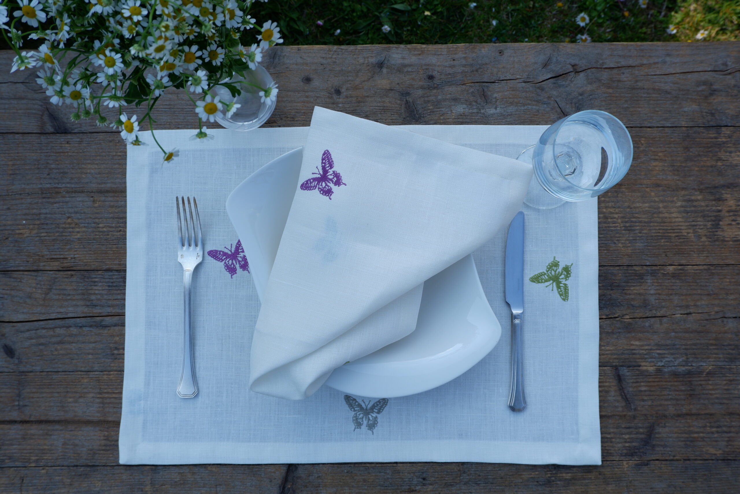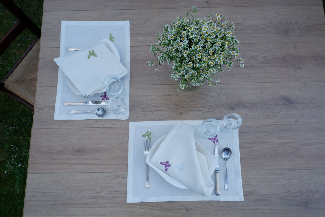 Siamo entusiasti di presentare le bellissime farfalle ricamate nella nostra collezione di tovaglie.