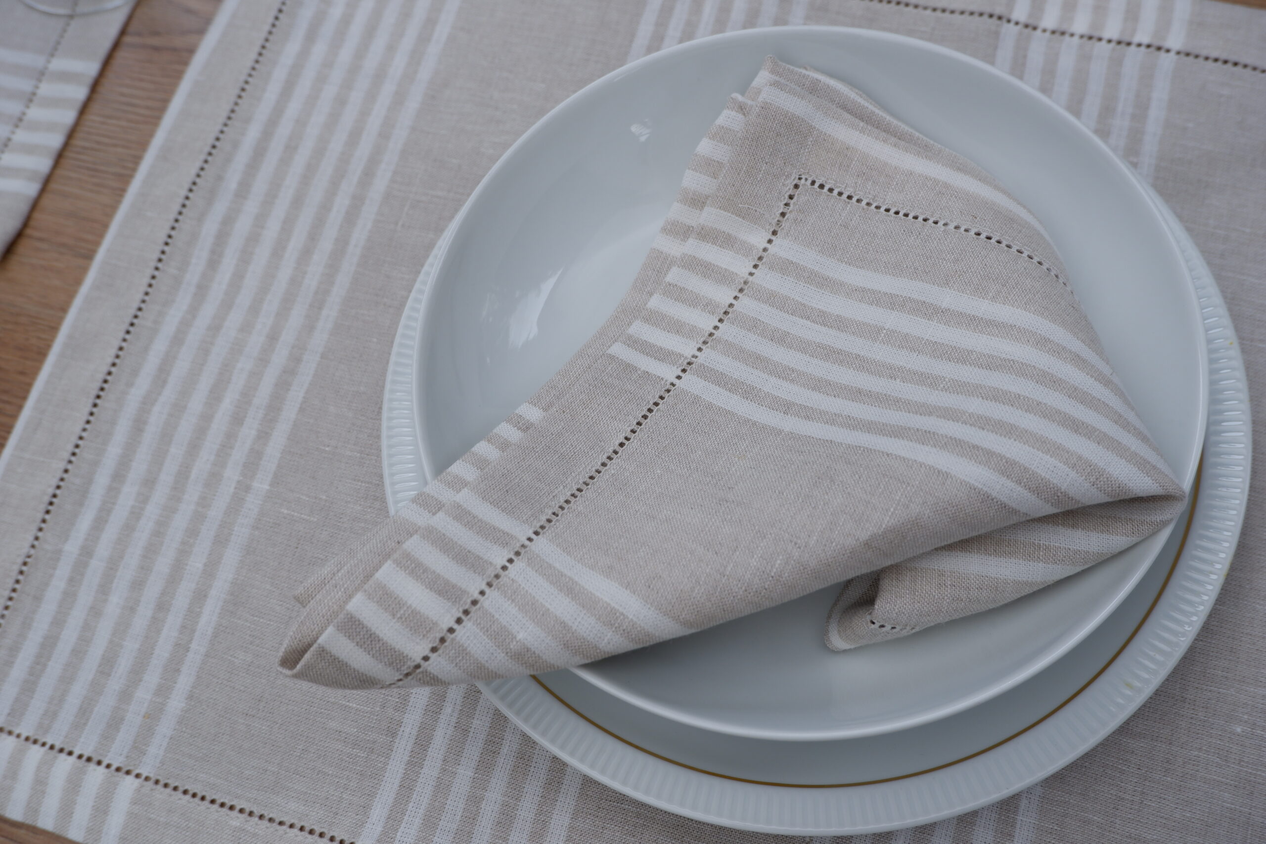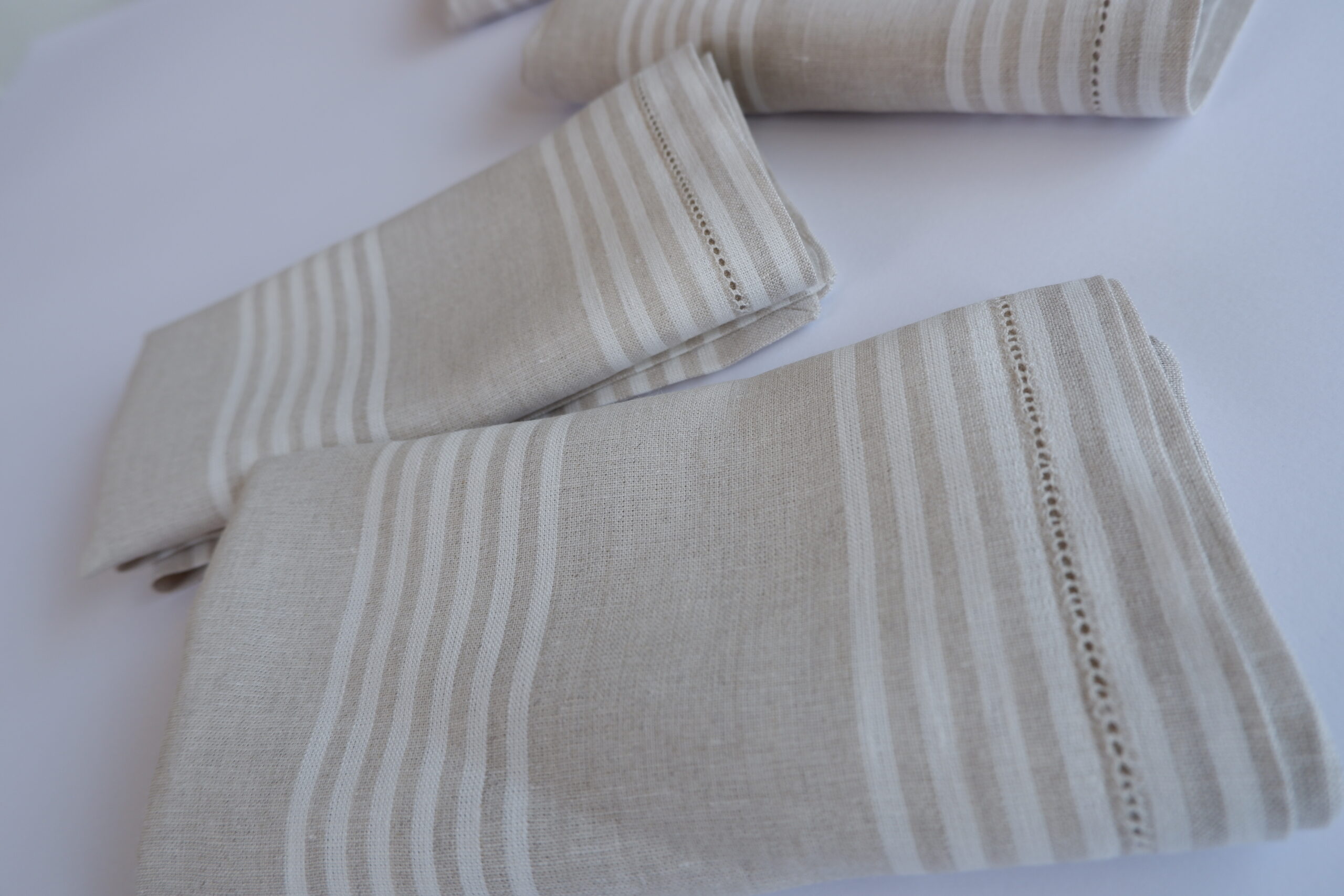 I nostri favolosi tovaglioli saint-Tropez in lino naturale sono rifiniti con dettagli a giorno. Realizzati in puro lino francese e completeranno la tua tavola con tovagliette/runner da tavola della stessa collezione , sono perfetti per un casual o formale pranzo.