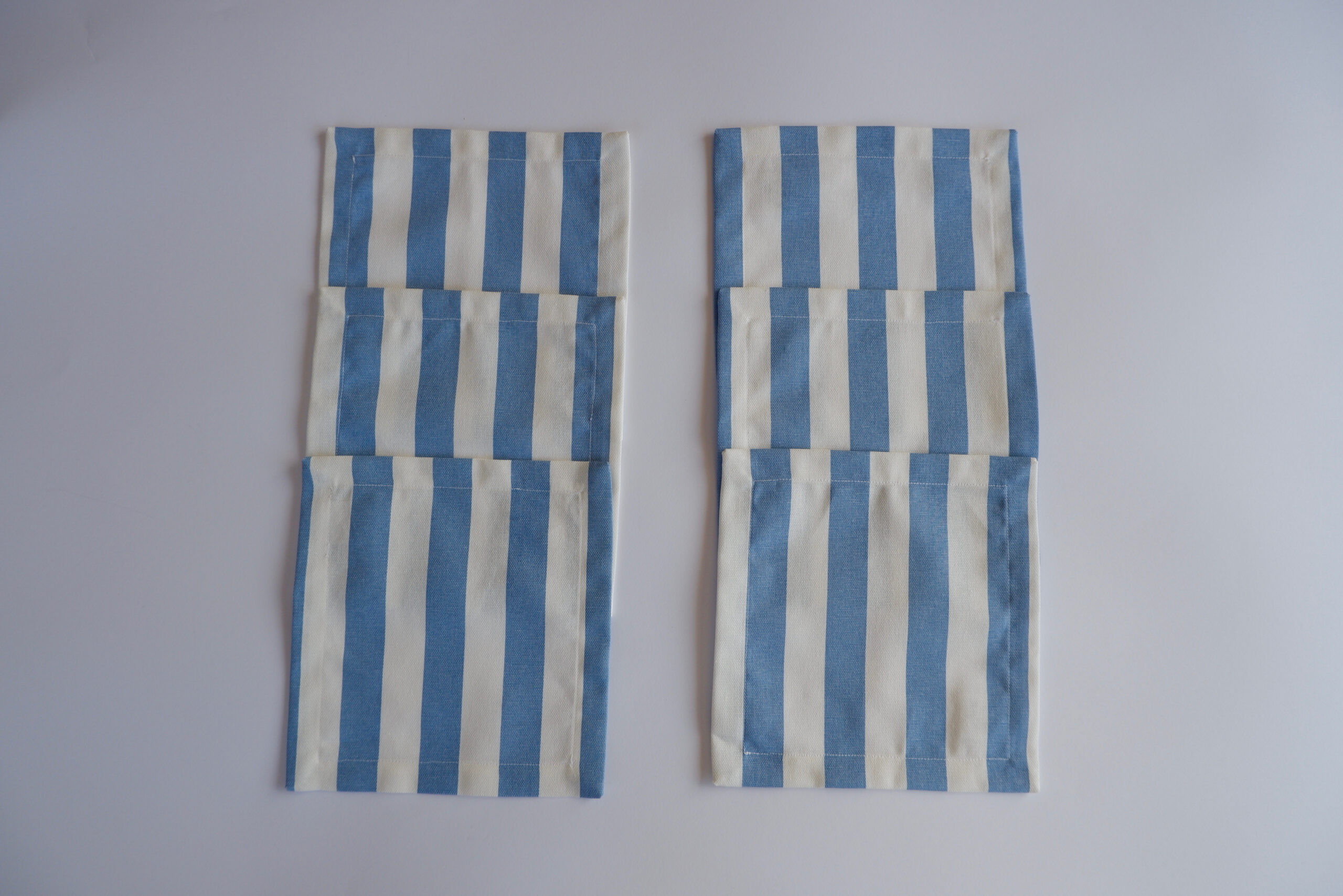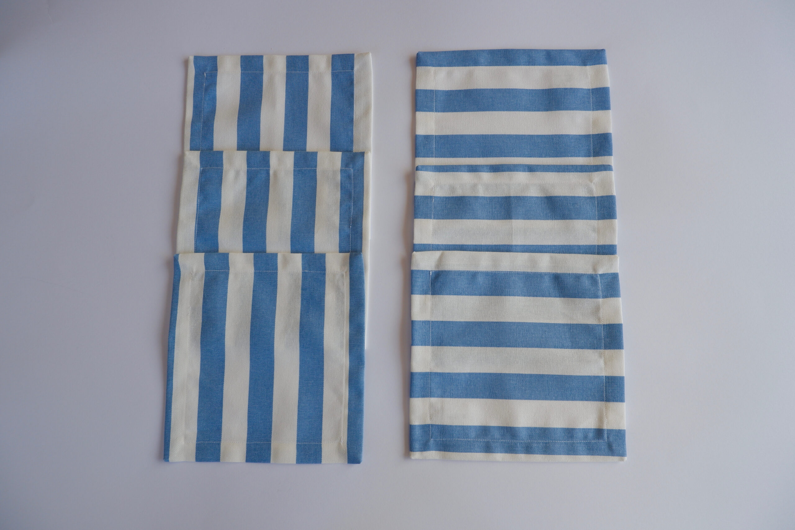 Ci siamo ispirati all'esclusiva isola greca di Santorini, questi tovaglioli da cocktail a righe blu/bianche sono perfetti per personalizzare la tua tavola, la pausa caffè o l'ora dell'aperitivo. Realizzati in cotone biologico utilizzando colori naturali.