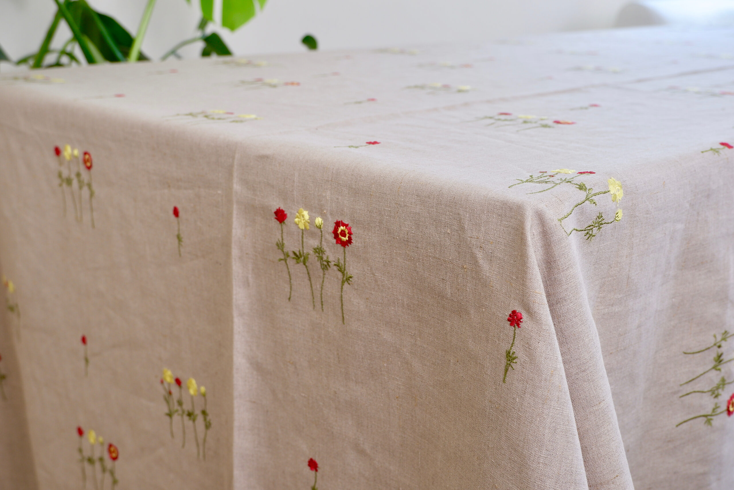 Tovaglia da tavola della nostra collezione di bouquet. Realizzato in puro lino francese con bellissimi fiori ricamati che aggiungono un tocco di allegria ed eleganza sul tuo tavolo da pranzo. MADE IN ITALY Dimensioni 140 x 220 CM Materiale 100% lino Cura: Temperatura di lavaggio: 30°C/86°F Non usare la candeggina Temperatura del ferro: 150°C/302°F Non lavare a secco Non asciugare in asciugatrice